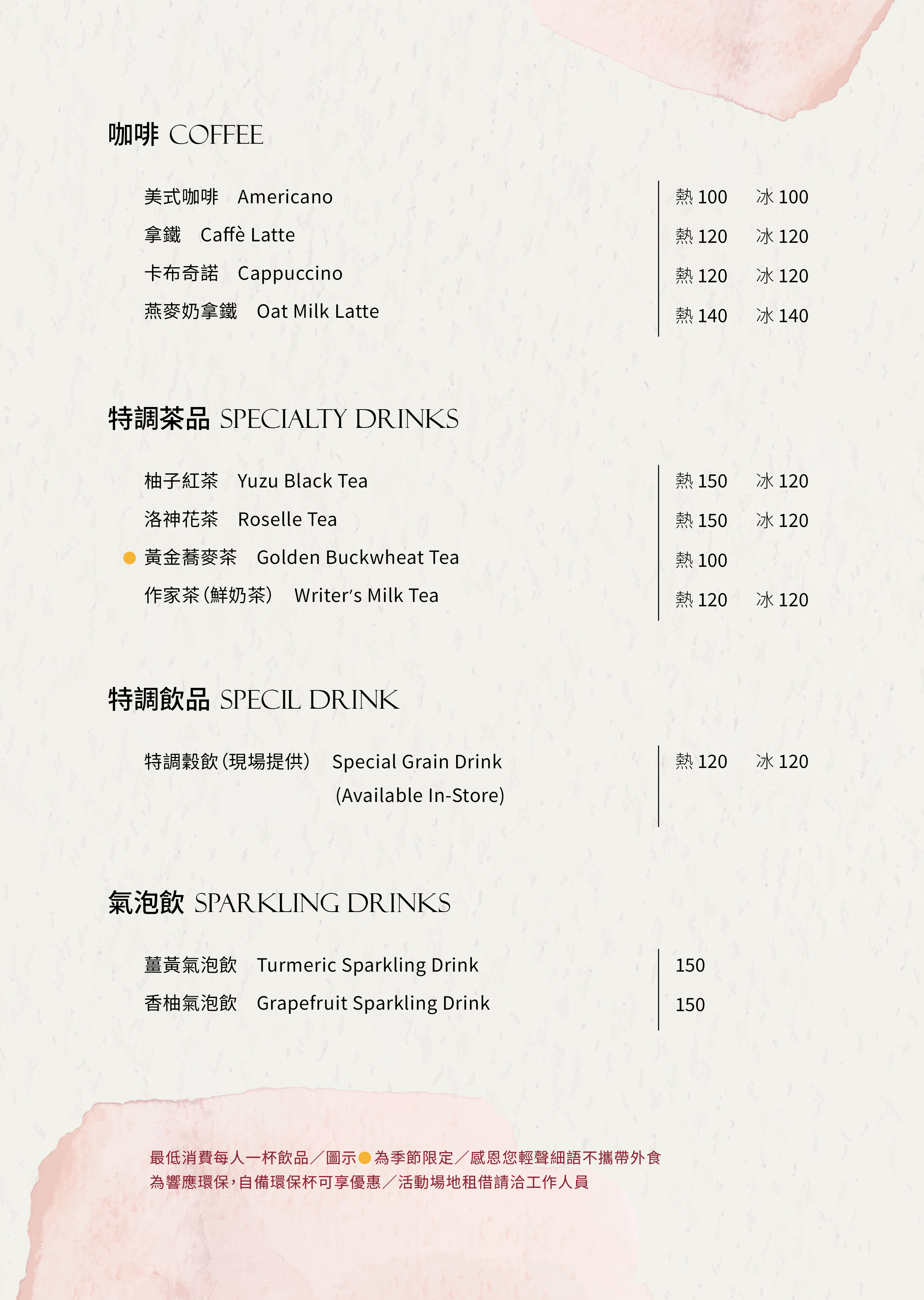 門市飲品 Drinks & Menu