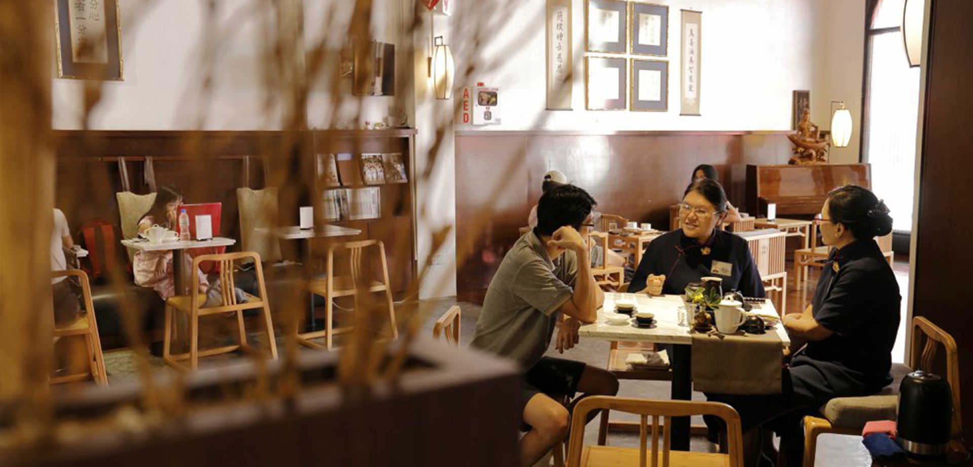 名為「靜思書軒」,皆因這兒不單是一處可讓人靜心品茶歎咖啡的地方,更是一家致力推廣佛教文化的書店。偌大的店分為兩個專區,左邊是書軒,右邊是 cafe。書軒採用開放式設計,店內主要出售佛教書刊,也有售賣佛教音樂CD、茶葉、餐具及布袋等日常用品。