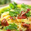 再加入義式天使細麵、豌豆、玉米粒、鹽拌勻後盛盤即可