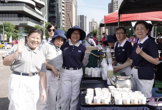 八月十日,中正藝文區舉辦生命線園遊會,在眾多的人潮中,師姊們以試喝榖粉推廣,感恩她們的用心。